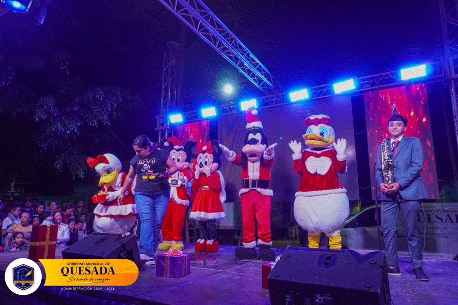 Así se vivió la gran inauguración de las luces navideñas en el parque municipal, una noche llena de alegría y color para todas las familias. Los asistentes disfrutaron de una hermosa casa inspirada en la casa de Mickey Mouse, ideal para los más pequeños, y de un elegante show de saxofonistas que ambientó la velada con música y espíritu navideño.