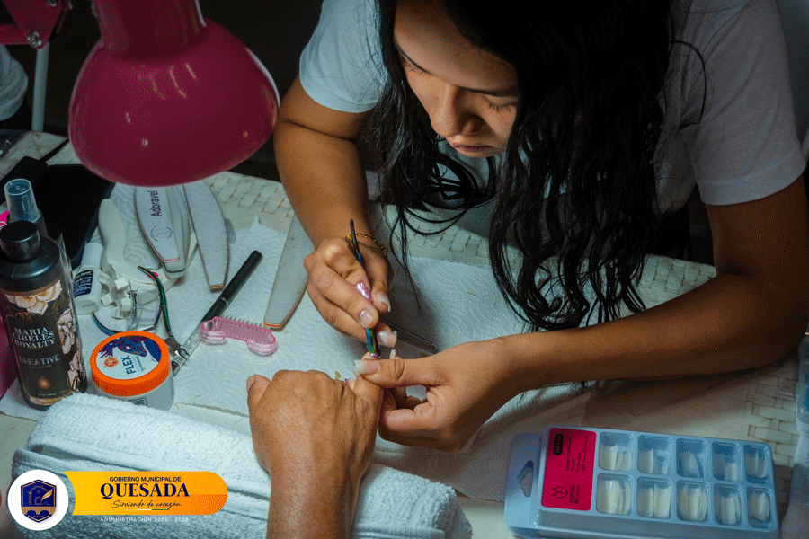 Proceso de práctica de Curso Básico de Uñas Acrílicas impulsado por la Municipalidad de Quesada.
